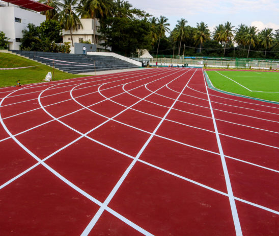 For running grounds, an athletic track is one of the best options available at DSSI FIELD SPORT EXPERT PVT LTD. We render the whole range of athletic tracks consisting of the full PUR, sandwich, and the spray system. Apart from that we also offer wetpour EPDM and running paths separately. We render complete vertically integrated solutions. The tracks are manufactured in Europe with highest quality for professional running. The flooring has excellent spike resistance and high level of grip for safe full speed running.